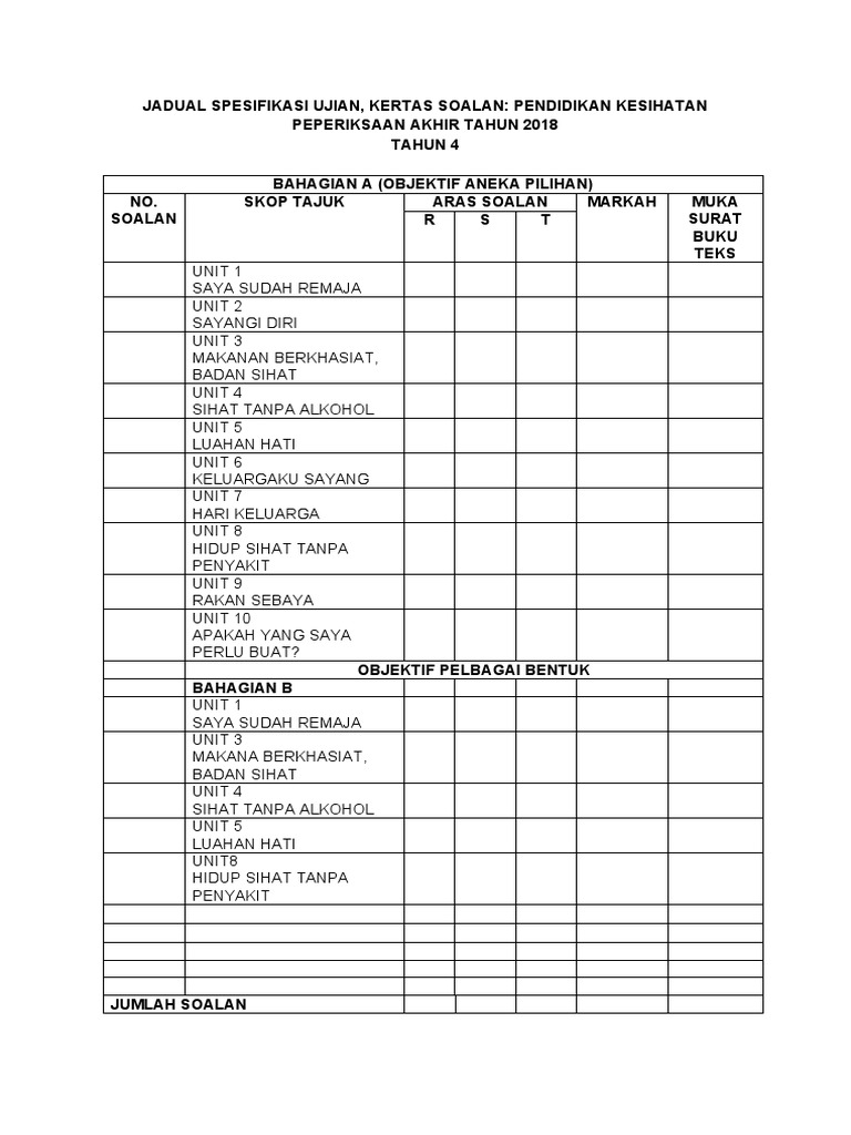 Jadual Spesifikasi Ujian Pk Tahun 4 2018 Pdf